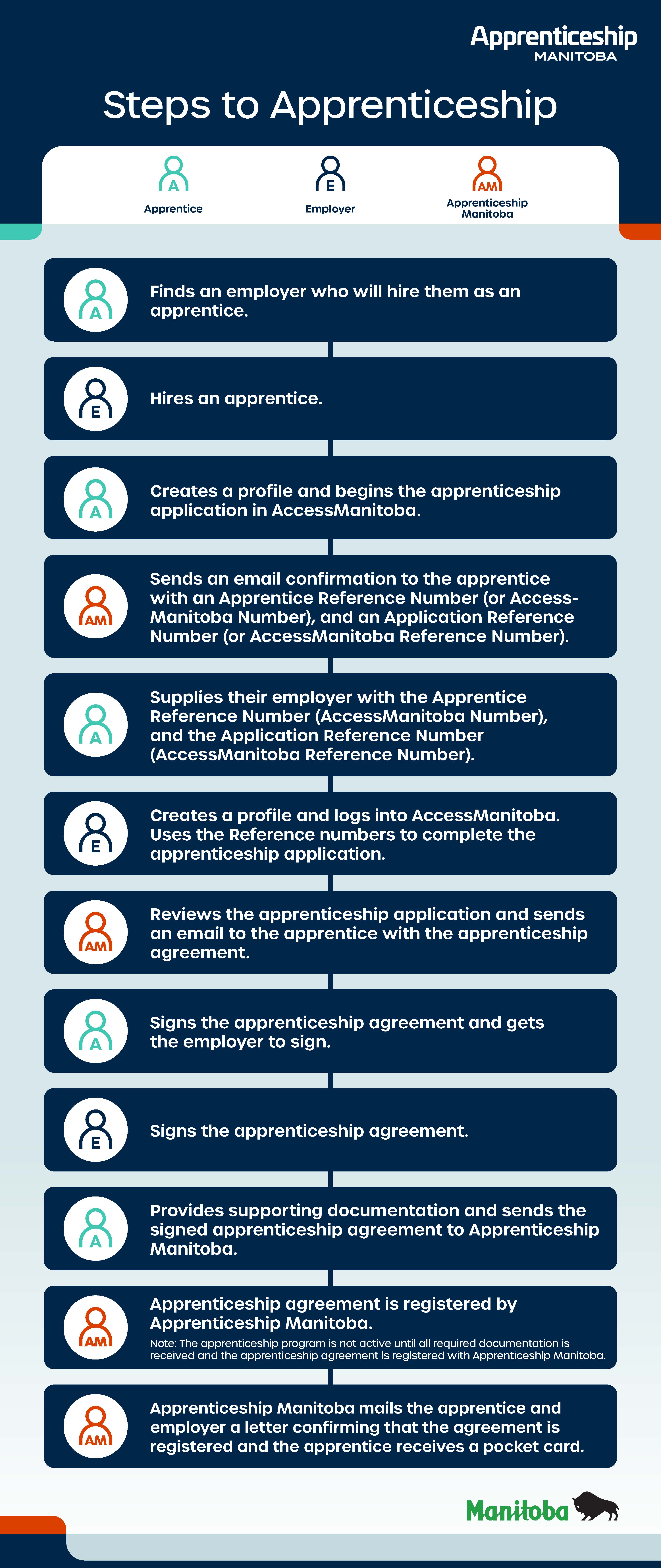 - Apprenticeship Manitoba sends an email to you with the Apprenticeship Agreement