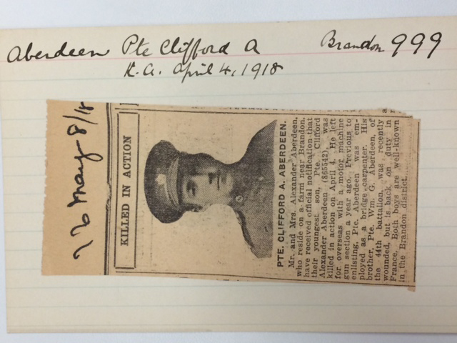 Du début de la Première Guerre mondiale et jusqu'à l'Armistice, le gouvernement manitobain s'est efforcé de consigner des données sur le grand nombre d'hommes – chacun un fils, un mari, un frère ou un père – tués au combat pendant le conflit. Des centaines de fiches contenant des renseignements biographiques concis ayant trait à la vie, et à la mort prématurée, des soldats tombés au front furent ainsi recueillies aux fins d'établir une liste d'honneur. Ces fiches sont aujourd'hui conservées aux Archives du Manitoba. Bien qu'elles ne représentent qu'une liste partielle de tous ceux qui ont fait le sacrifice de leur vie pendant la Première Guerre mondiale, les fiches ouvrent une fenêtre sur les effets qu'a eus la guerre sur les familles et les communautés manitobaines.