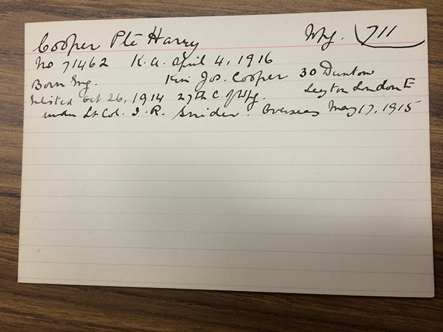 Conseil de recherche : Tapez « Index cards identifying soldiers killed in World War I » dans Keystone pour en savoir plus sur ces documents.