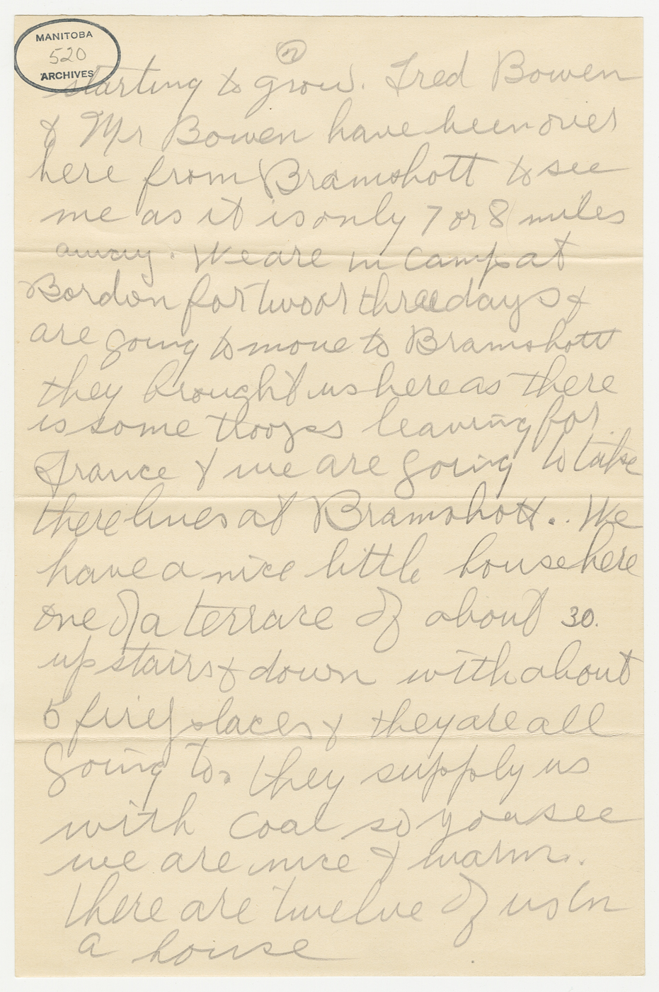 Archives of Manitoba, Battershill family fonds, Letter from George Battershill,