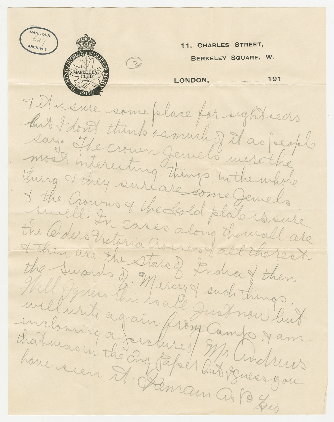 Quatre lettres sont en vedette cette semaine : deux écrites à Bordon Camp et deux rédigées pendant la sortie de George à Londres. La première lettre de Londres porte seulement la date de « 1916 », mais son contenu porte à croire que les deux lettres ont été écrites lors de la même visite.