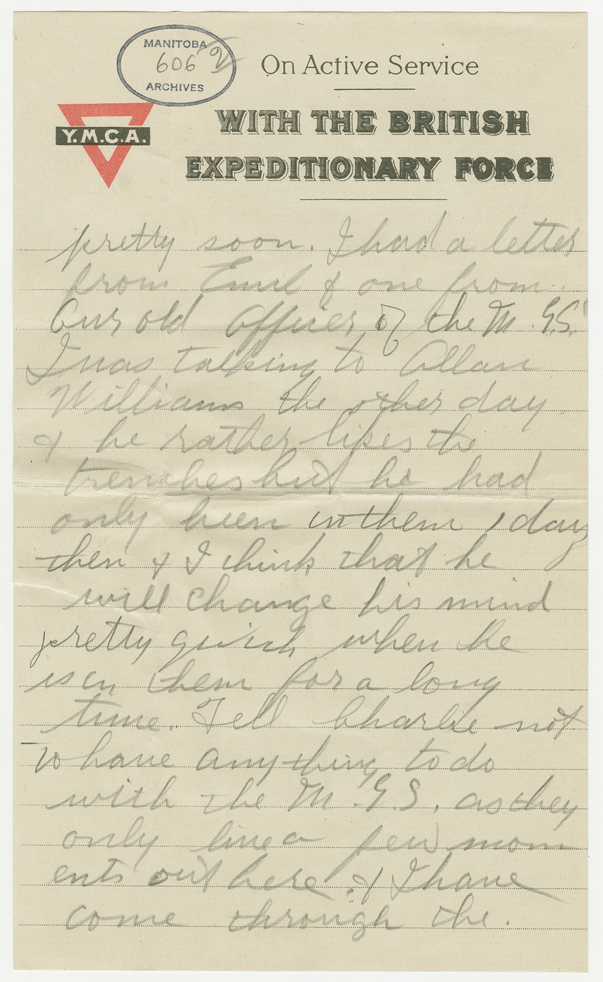 Il commence la dernière de ces trois lettres ainsi : « Just another line to say that I am not in the trenches yet but expect to be in them pretty soon ».