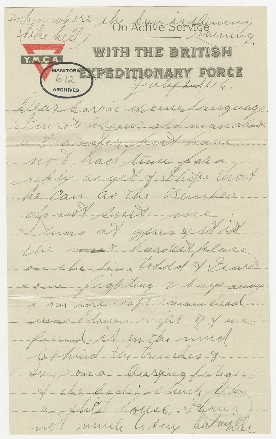 Dans celle du 16 juin, il décrit les sons de bataille qu’il entend : « I can [hear] the big guns plain from here + they are making some noise ».