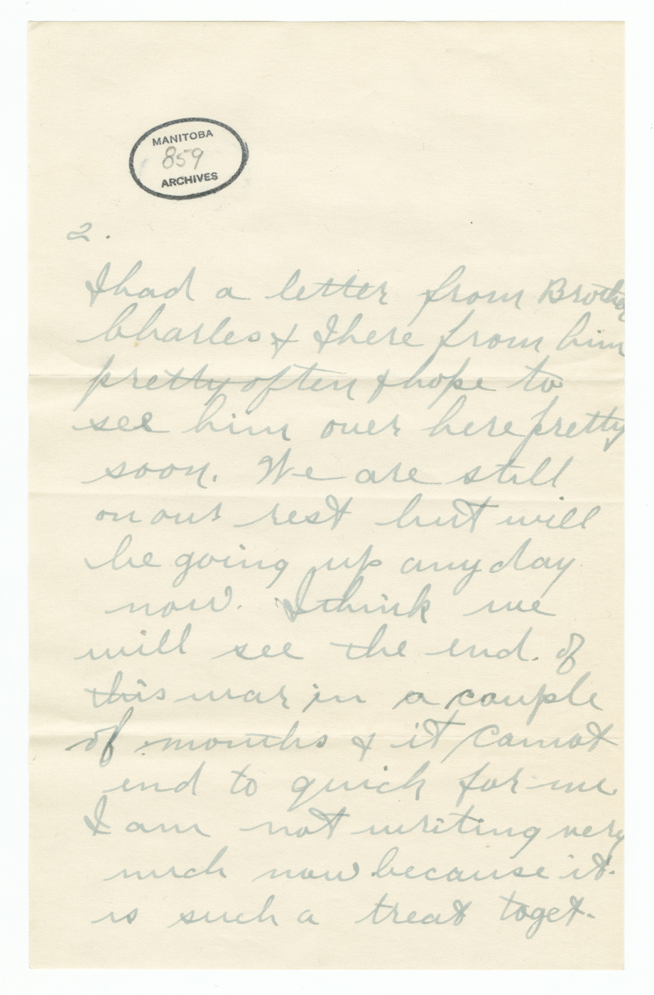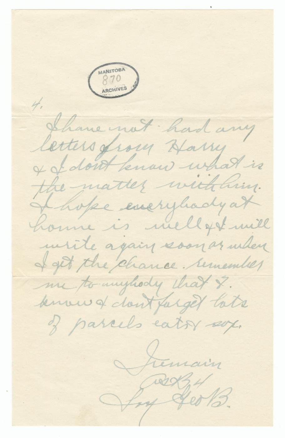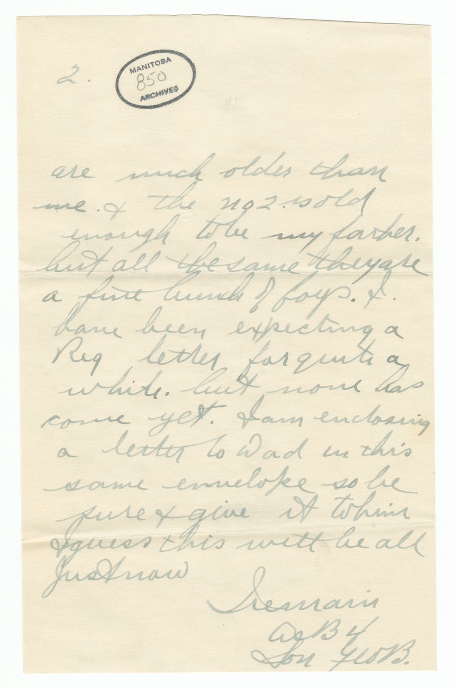 Un soldat du Manitoba : « Remember me to anybody that I know »