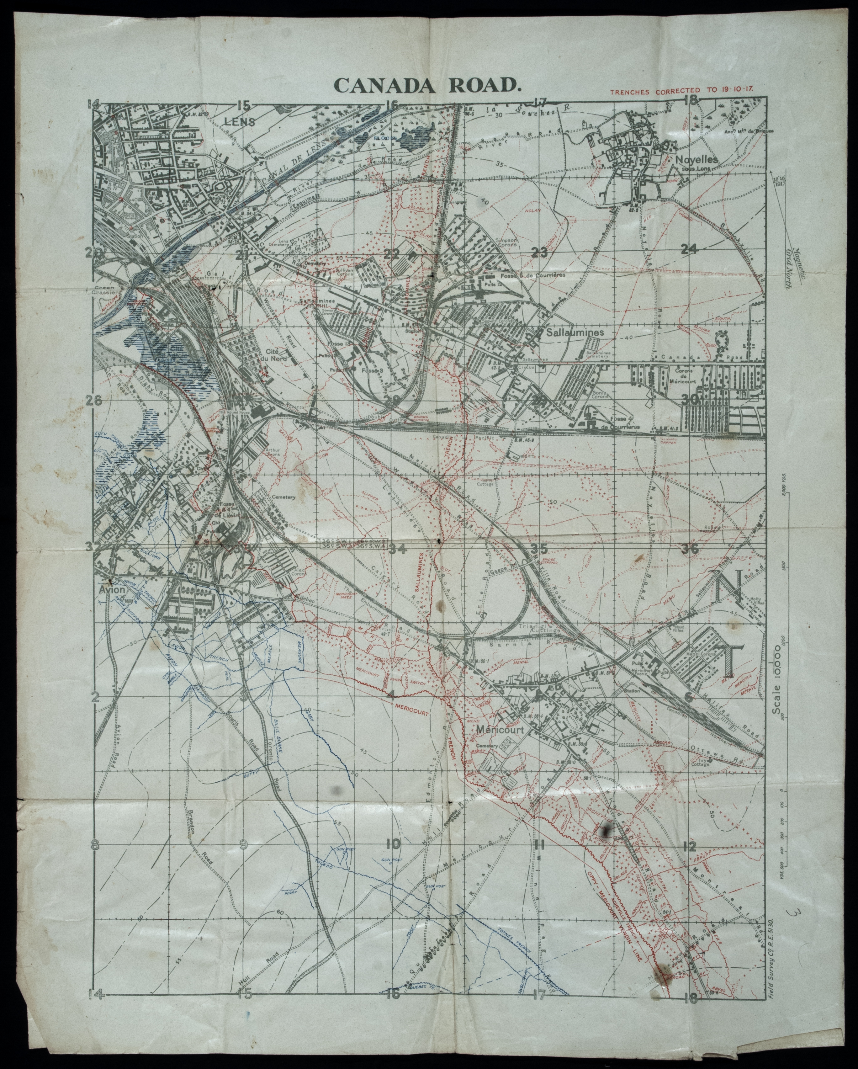 Les Archives du Manitoba ont une petite collection de cartes des tranchées de la Première Guerre mondiale qui fait partie de la collection de cartes des Archives du Manitoba (« map collection » en anglais seulement). Ces cartes ont été données aux Archives en 1982 par la Société des alcools du Manitoba. On ignore comment ces cartes se sont retrouvées en sa possession, mais nous sommes certes heureux de les avoir aux Archives.