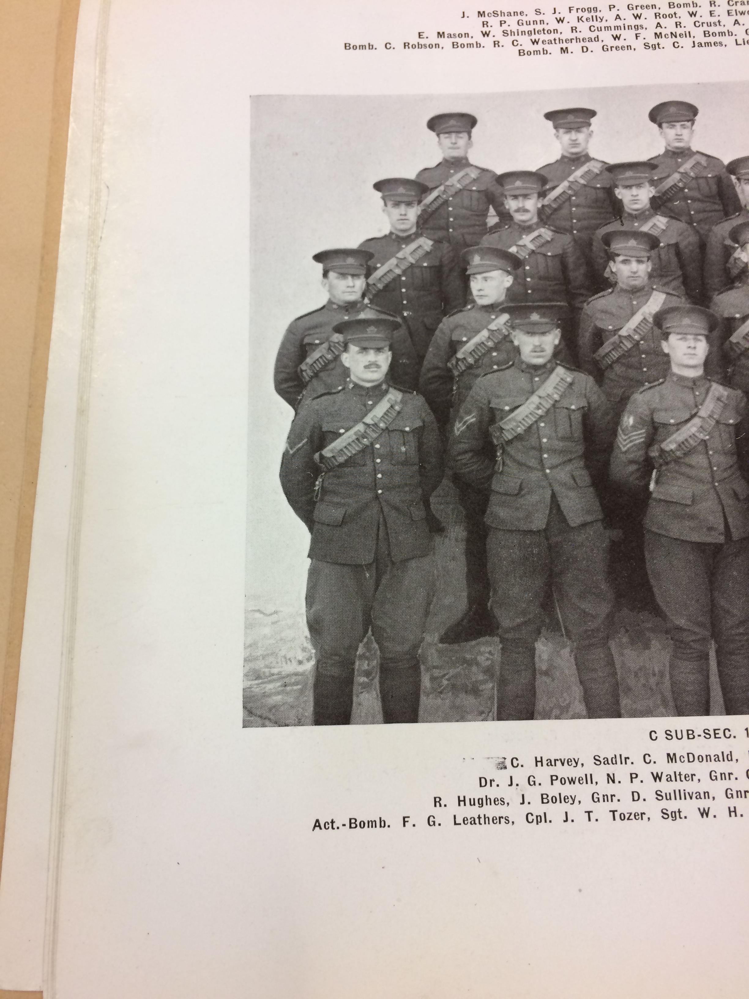 Lorsque nous préparions notre récente activité portes ouvertes pour célébrer le 100e anniversaire de la bataille de la crête de Vimy, nous avons consulté le livret souvenir afin de trouver certains des soldats manitobains sur lesquels il existe des documents dans les fonds et collections des Archives. Nous avons été très heureux de trouver une photographie de Frank Leathers et nous avons présenté le livret, ouvert à la page contenant cette photographie, à côté de certaines de ses lettres à notre activité portes ouvertes. Finalement, nous pouvions voir un autre des grands correspondants de la Première Guerre mondiale représentés dans nos fonds et collections.