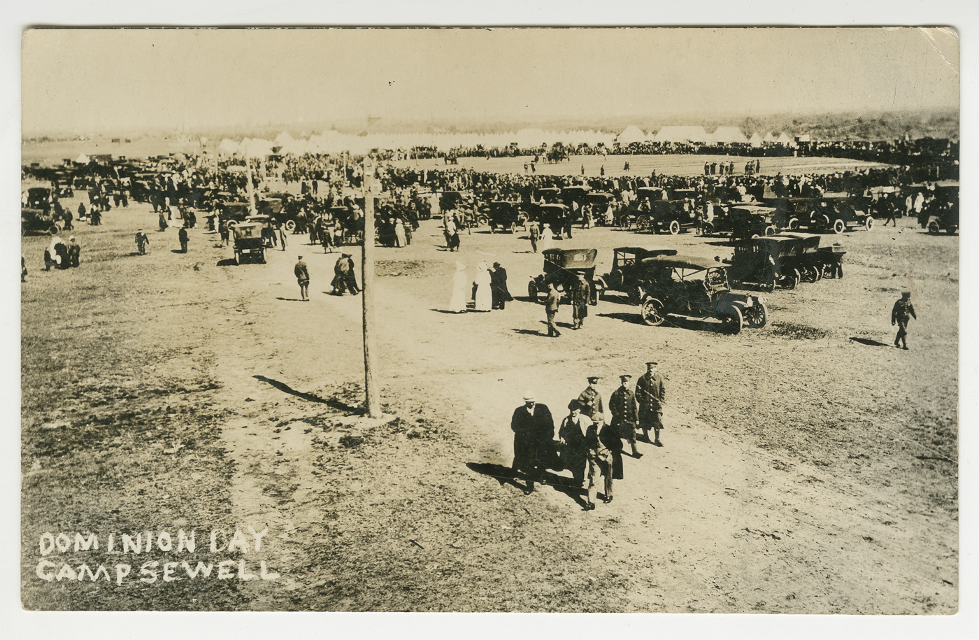 “Dominion Day, Camp Sewell” postcard, sent October 4, 1915, P6011A/1