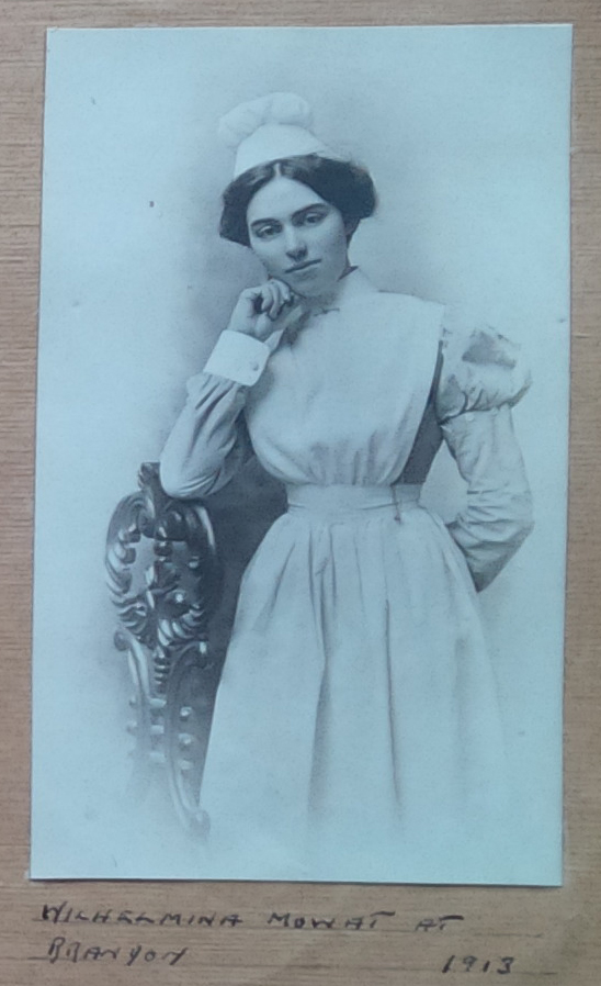 Des photographies de Mina Mowat (également connue sous le nom de « Mowie » ) ont été préservées dans un album de coupures compilé après la guerre par son mari, Richard Douglas Waugh, qui a servi pendant la Première Guerre mondiale au sein du Lord Strathcona's Horse. Nombre de ces photographies ont été prises par Mina et la montre au travail, avec ses collègues infirmières et avec des soldats, de même que pendant ses moments de loisir et ses voyages.