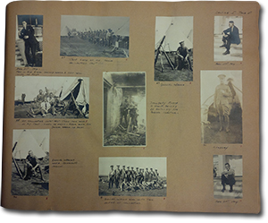 The section of the scrapbook devoted to Waugh’s military service includes 47 pages of photographs, documents and accompanying captions outlining his First World War service from the time Douglas Waugh enlisted on the third day of the war in 1914 to his return to Winnipeg in 1916.