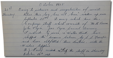 The 1916-1919 journal kept at Cartwright, an HBC post on the Labrador coast, provides an intimate glimpse into life during the worst months of the flu epidemic, particularly November and December 1918.