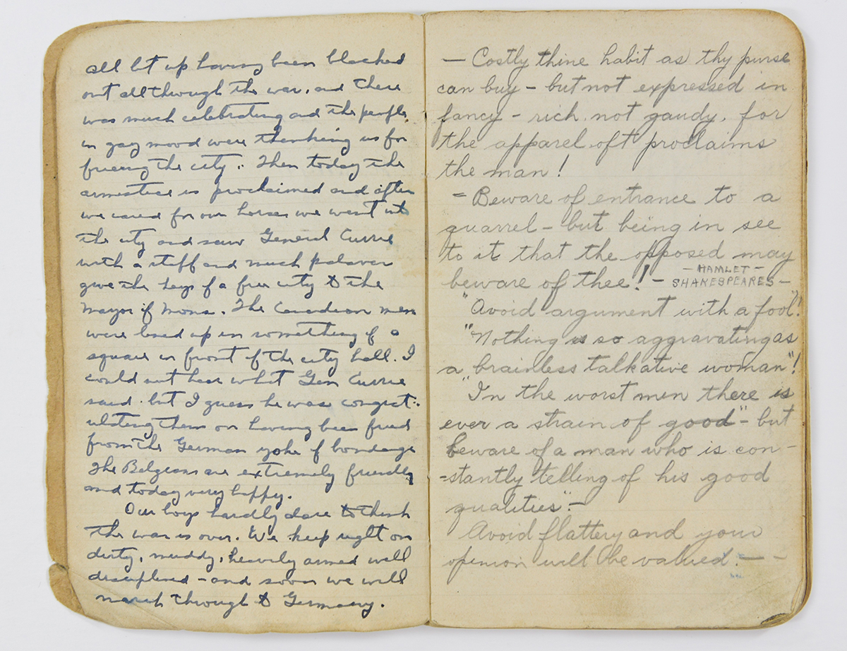 - des journaux intimes de soldats et d’officiers manitobains relatant les expériences qu’ils ont vécues pendant la guerre;