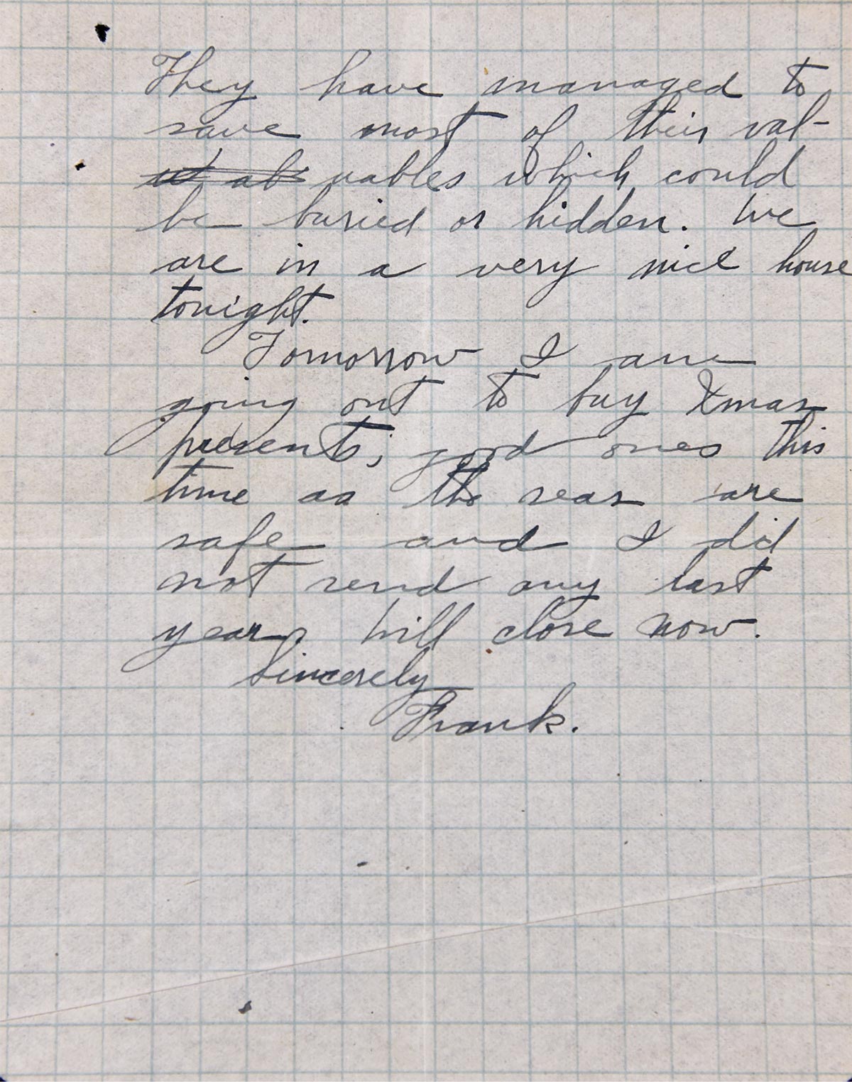 Dans une lettre datée du 14 mars 1915, Frank avait demandé à sa mère de garder ses lettres, parce que :