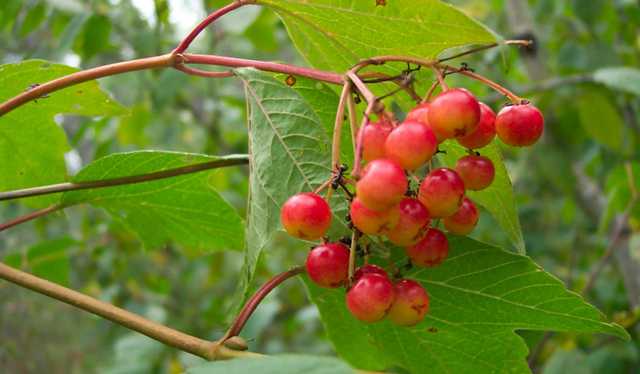 Highbush cranberry flowers in early summer and produces fruit ripe by late summer. Often the fruit is picked after a frost which tends to make the fruit more palatable.
