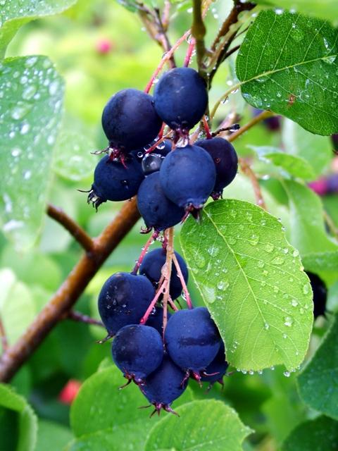 The saskatoon (Amelanchier alnifolia) is a small to large shrub, or small tree, which belongs to the Rose family. It is closely related to the apple, hawthorn and mountain ash. The saskatoon is a perennial, woody, fruit bearing shrub which is capable to adapting to a wide range of soils and climatic conditions. The saskatoon is native to the Canadian Prairies, the Northwest Territories, the Yukon, Alaska, British Columbia and the northwestern and north central United States. The saskatoon is hardy to -50º to -60º C. Flowering occurs in early May to early June.