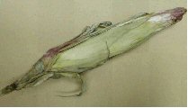 A dark pink to red mould that progresses from the tip of the ear, downward to the base of the ear is the most obvious symptom. A pinkish white cottony growth (mycelium) may be visible on the husks. Husks begin to appear bleached, and adhere tightly to the ear. (See Figure 11.)