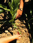 To compare nutrient levels to established values, the leaf opposite the cob (called the ear-leaf) should be collected at tasselling from 20-25 plants. Contact your laboratory for instructions on sampling, handling and shipping.