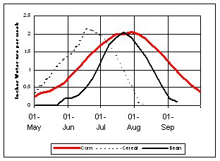 Comparison between water use of cereal, bean and corn crops are illustrated in Figure 3.