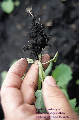 The adults are most abundant in canola during June and early July. Heavy infestations in canola and mustard can delay blooming and cause severe lodging and yield losses. Infested canola roots are often darker than normal roots.