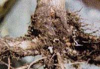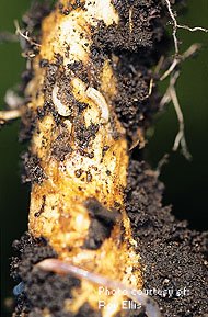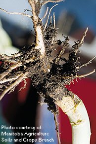 Often, infested roots are darker in colour than healthy, uninfested roots.