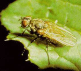 The adult stage is a fly that emerges in the spring or early summer from overwintering cocoons in the soil. It looks like a common house fly but is smaller and ash grey in colour with a dark stripe along the back of the abdomen. A second adult emergence may occur later in the summer as the first generation completes its life cycle. Thus, maggots can be found throughout most of the growing season.