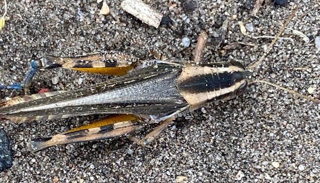 Twostriped grasshopper: This is the largest of our pest species of grasshoppers, with adults getting to approximately 26 to 40 mm in length.