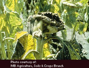 Midge larvae can affect the growth of sunflower heads. Heavily-damaged heads are gnarled and cupped inwardly, producing few seeds.