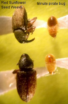 Care should be taken while looking for seed weevils not to confuse other insects which may be present on sunflower heads, such as minute pirate bugs (Figure 1), for seed weevils.