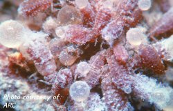 Woolly elm aphids on roots of saskatoon