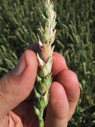Fusarium head blight is a fungal disease of various grasses that stops kernel development. The disease is most often found in wheat, but can also affect barley, oats, rye and some forage grasses. The first severe outbreak in Manitoba occurred in 1993, but localized outbreaks have been reported since 1986.