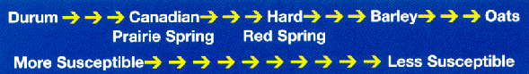 Regardless of the rotation, producers should consider planting cereals that are less susceptible to fusarium head blight. Results from previous years show that durum wheat is more susceptible than hard red spring wheat varieties. Barley is more resistant than wheat, and oats are considerably more resistant than either wheat or barley.