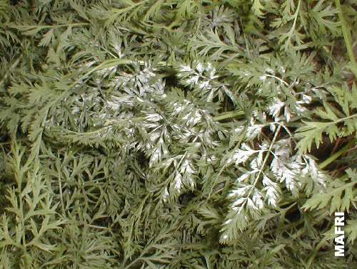 Powdery mildew of carrot caused by Erysiphe heraclei