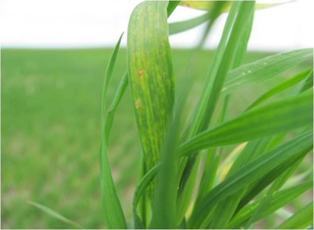 Winter wheat is just starting to green up; it will be time to scout for WSMV in a few days. Typical symptoms of WSM are yellow streaks or mosaic patterns parallel to the veins on leaves. Often the young leaves may not unfurl completely due to presence of wheat curl mites. With time the leaves show more pronounced yellowing, but the veins stay green longer.