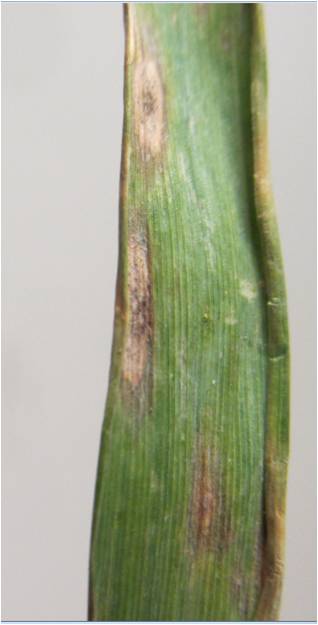Fig. 2. Septoria leaf spot on rye. Note the pycnidia in the center of the spots.