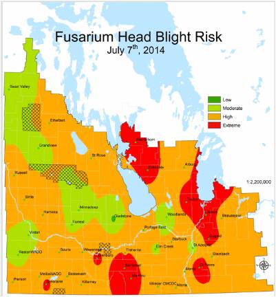 The Fusarium Head Blight Risk Forecast webpage is up and running at http://www.gov.mb.ca/agriculture/crops/fhb/index.html.