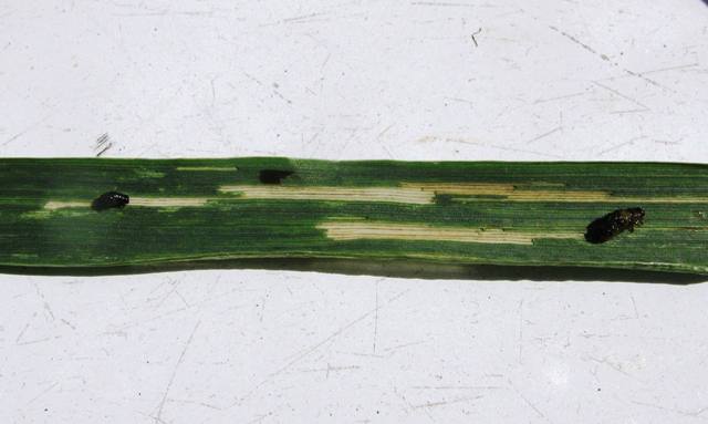 Low levels of English gain aphid and oat-birdcherry aphid are being found in some fields. So far no fields have been reported near the threshold of 12 to 15 aphids per stem on average. Natural enemies can be found in some of these fields, including aphid mummies, which are the remains of aphids that have been parasitized by parasitic wasps. Heavy rains can also help reduce aphid levels.
