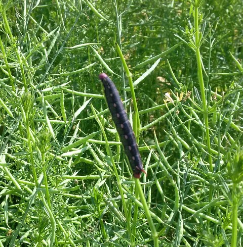 This caterpillar is closely related (same genus) to the spurge hawkmoth (Hyles euphorbiae) which has been introduced to control leafy spurge.