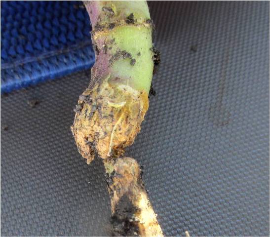 Fig.1. Root rot and pinching, with blackleg. Photo: Vikram Bisht, MAFRD.