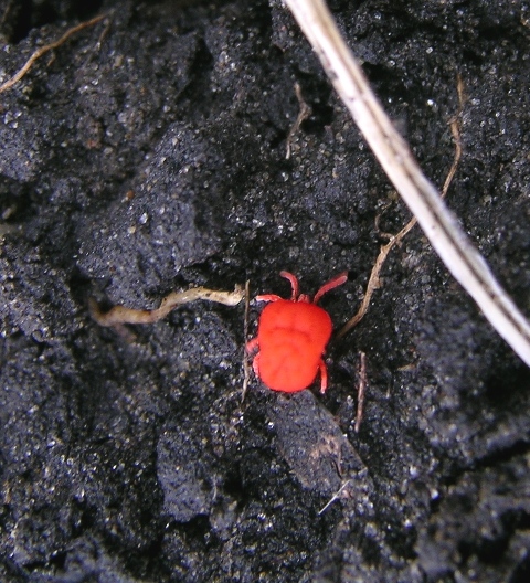 Some have asked about what these small bright red things are that can often be seem on the soil this time of year. These are red velvet mite, technically a mite and not an insect, although we still like them. The adults prey on insect eggs and other small arthropods. The immature stages of these mites are parasitic on grasshoppers and other insects.