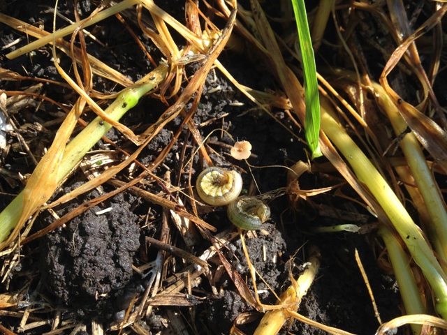 Armyworms: Armyworms are present in noticeable levels in many areas of Central Manitoba. Larvae can be scouted for by counting the number of larvae per square foot on average. The majority of larvae will be on the ground during the day and often hidden under debris on the soil, under clumps of soil or in crack in soil, so scout the ground thoroughly. Many will curl up when disturbed. The colour of the larvae can sometimes vary considerably between individuals.