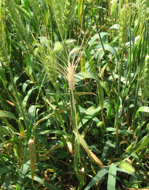 White heads in wheat, could it be wheat stem maggot? White heads of wheat (Figure 3) are noticeable in some fields of wheat that should otherwise have green heads still. One possible cause of this is wheat stem maggot. There are diseases and environmental factors that can also cause white heads in wheat, so it is not always immediately obvious what the cause is. If wheat stem maggot is the cause, most of the heads will easily slide out of the stem when you pull on them. And if you slit the stems you may be able to see the pale green maggots inside (Figure 4). They also tend to leave frass in the stem that looks like sawdust. In some of the wheat around Carman the white heads are noticeable, but at such low levels that yield loss would be negligible.
