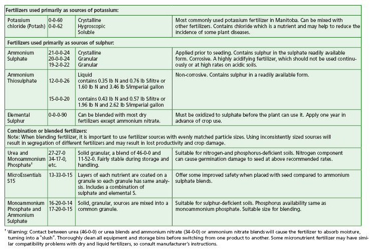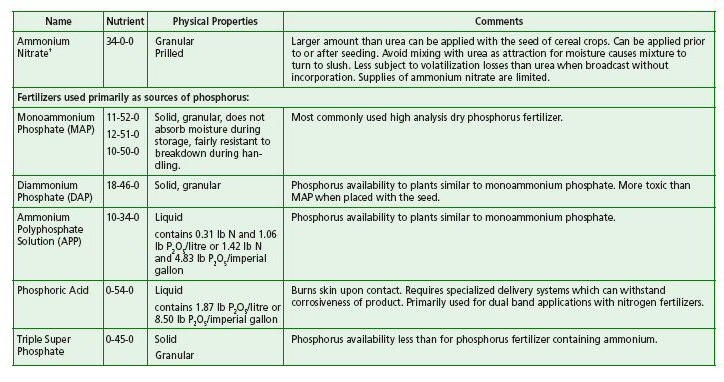 Table 17 summarizes common fertilizers used and their characteristics.