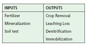 The approach is based on drawing a balance between inputs and outputs during the previous growing season. Any positive excess in the balance can be considered as a soil test value for next year. This method works only for nitrogen, since soil phosphorus and potassium soil tests are meant to measure both 'available' and 'potentially available' levels and, in any event, change slowly; therefore, the same soil test can be used for 2-3 years.