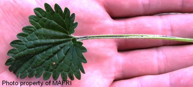 An annual or biennial, reproducing by seeds. The stems are erect, branched, and square. Leaves are opposite, petiolate, and coarsely toothed. Leaf veins do not extend to the serrated leaf margins. The flowers are dense spikes, bluish-purple in colour, located at the ends of branches or clustered in leaf axils. Stiff spiny bracts at the base of the spike make the head look prickly. The seeds are brownish-black, barely 3 mm long, within a calyx, round on one side and ridged on the other. A calyx contains 4 seeds.