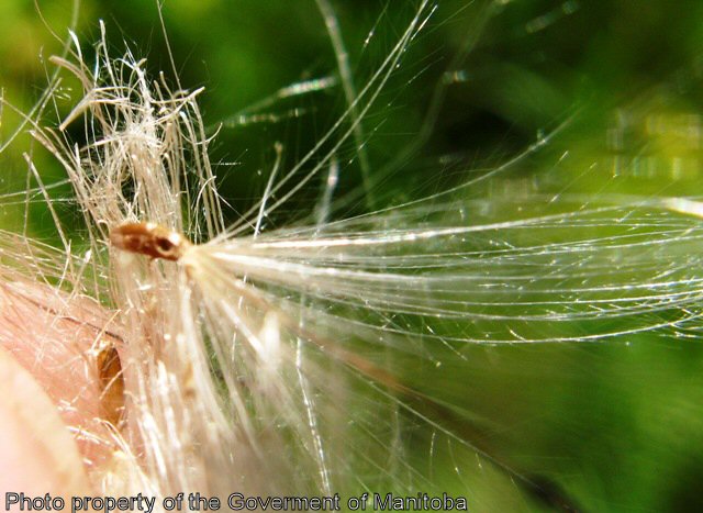 Canada thistle also spreads by seed with the help of pappi attached to the seed. This parachute-like attachment allows the seed to be borne by wind, carrying it as far as 60 metre (200 ft.) from the mother plant.