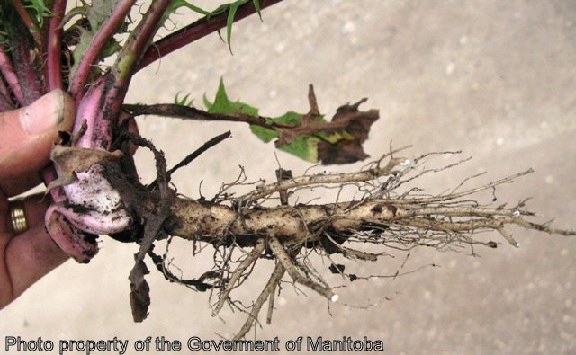 Because dandelion has a simple tap-root, tillage can be effective for control. Tillage must be deep enough to cut the root 10 cm (4 in.) below the crown. Heavy-duty cultivators and deep tillers are most successful. Discers are often ineffective in well-established stands.
