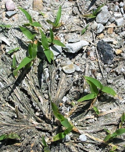 Germination occurs readily at temperatures from 20-25 degrees C (68-77 degrees F). These temperatures are common during late May and early June. However, germination may continue up to September. The main flush of growth occurs in June. Subsequent germination usually coincides with rainfalls and moist to wet soils.