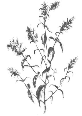 Description and Life CycleRed bartsia germinates in late spring. At first it grows slowly and may not be noticed during early summer (Figure 3).In July, the weed begins rapid growth, reaching heights of 15 to 30 cm (6 to 12 inches). Stems are erect, branching and bear clasping narrow leaves about three cm (1.25 inches) in length. The leaves occur in pairs and taper to a point. Both the leaves and the stem are densely hairy. Spike-like clusters of flowers develop on flower stalks which grow from the point where the leaves join the stem. Most flowers are found on the top half of the stem. The blossoms are reddish-purple in colour and resemble tiny snapdragon flowers (one cm or less than a ½ inch long). At maturity, an infestation gives a reddish tingle to hayfields, pastures or ditches. This reddish tinge is also seen in infestations of red samphire (Salicornia), a plant frequently found growing in ditches and often confused with red bartsia. The two species can be distinguished by the absence of any leaves on red sapphire. Red bartsia is prolific, producing about 1400 seeds per plant. The seed shells out in September, infesting fields for some time to come. Coarse hairs cover the seeds, enabling them to adhere to clothing and equipment. The seed is light and is easily carried along ditches and through fields by runoff water. |
