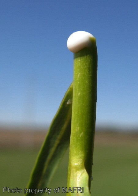 This weed is found in rangelands and cultivated fields. Difficult to control because the root fragments can produce new shoots from depths as great as 1 meter. The milky latex within the stems and leaves is harmful to skin causing rashes and it is poisonous to most livestock. Livestock feeding on leafy spurge can become photosensitive.