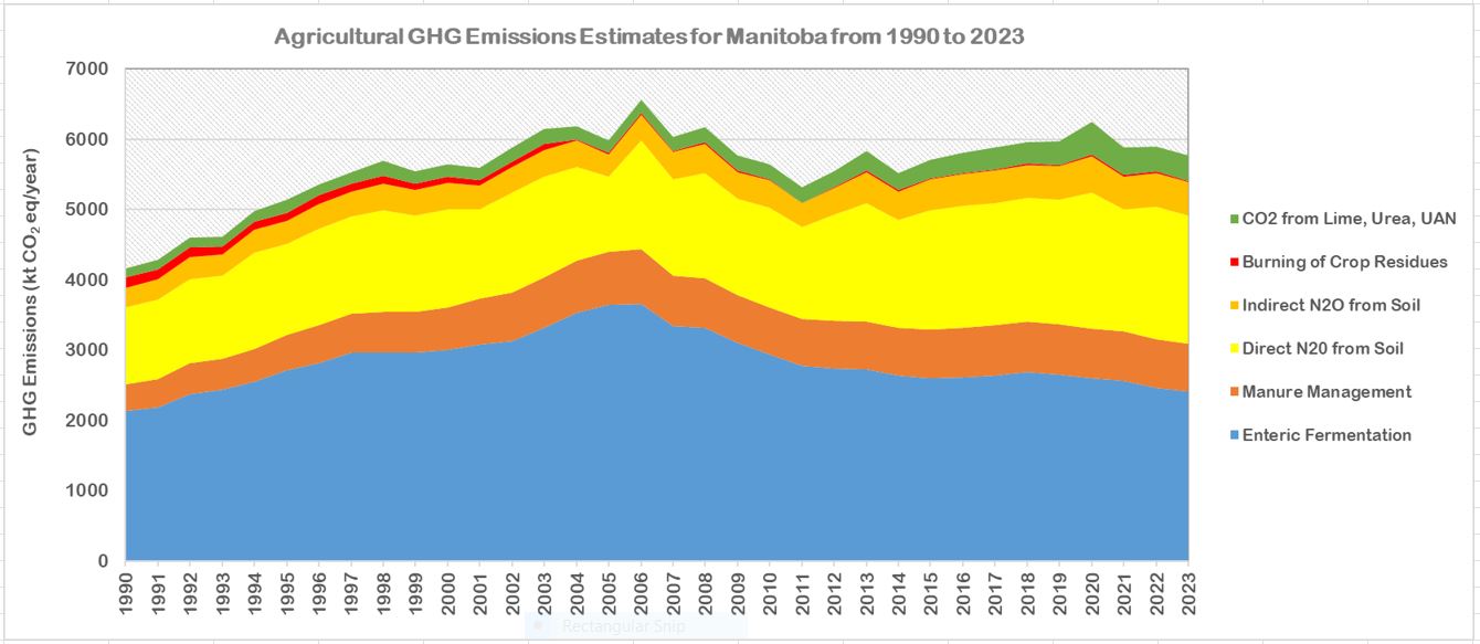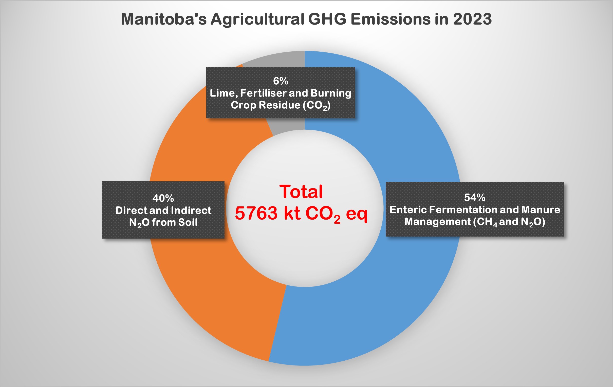 Figure 2. Distribution of Manitoba's Agricultural GHG emissions in 2023. Source: Environment and Climate Change Canada (National Inventory Report)