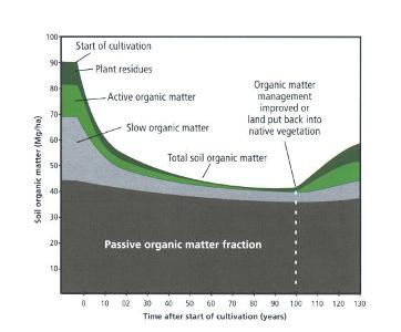 Figure 8.1 Trends in soil organic matter content (Brady,1999) |